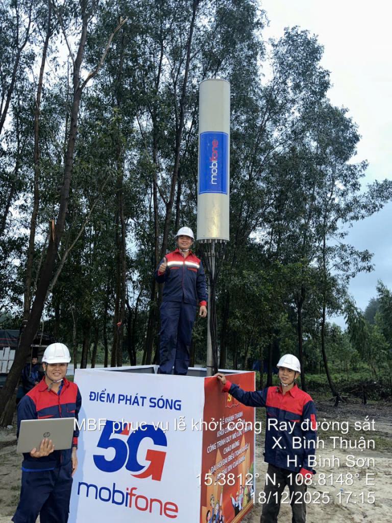 Đội ngũ cán bộ kỹ thuật MobiFone đảm bảo chất lượng mạng lưới tại lễ khởi công các dự án tỉnh Quảng Ngãi