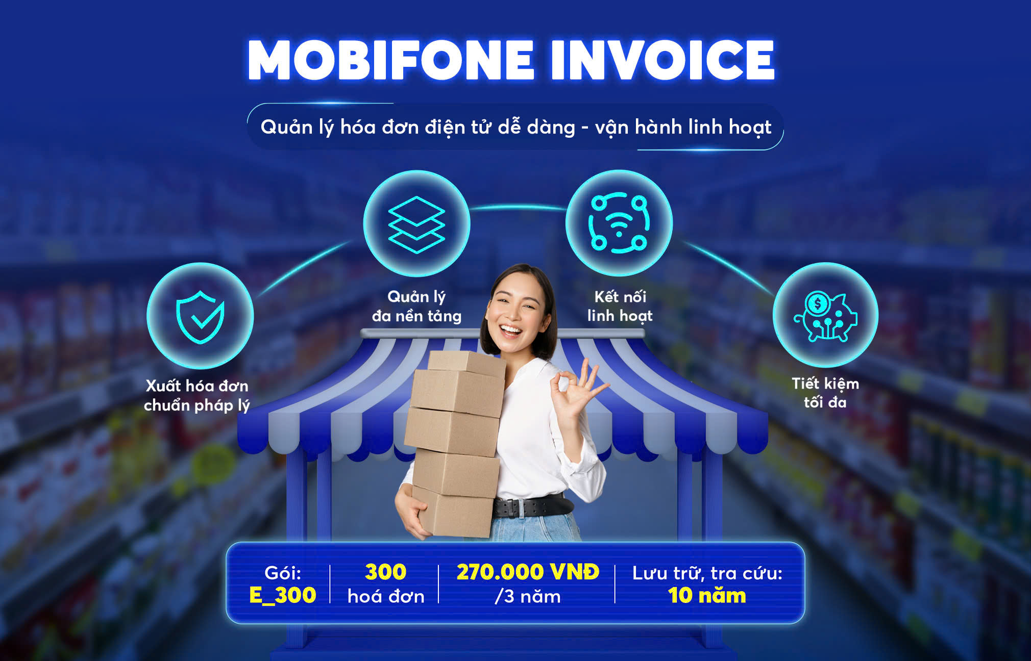 Để đồng hành cùng doanh nghiệp trong quá trình chuyển đổi số, MobiFone mang đến các gói E300, E500, E700 với chi phí chỉ từ 270.000 đồng cho 3 năm sử dụng. Doanh nghiệp có thể phát hành từ 300 đến 700 hóa đơn điện tử, tùy theo từng nhu cầu. Toàn bộ dịch vụ không chịu thuế GTGT (VAT) trong thời hạn sử dụng, lưu trữ và cho phép tra cứu miễn phí suốt 10 năm. Nhờ ưu đãi này, ngay cả hộ kinh doanh nhỏ lẻ cũng có thể tiếp cận giải pháp chuyên nghiệp, tiết kiệm chi phí nhưng vẫn đảm bảo tính minh bạch và uy tín.
