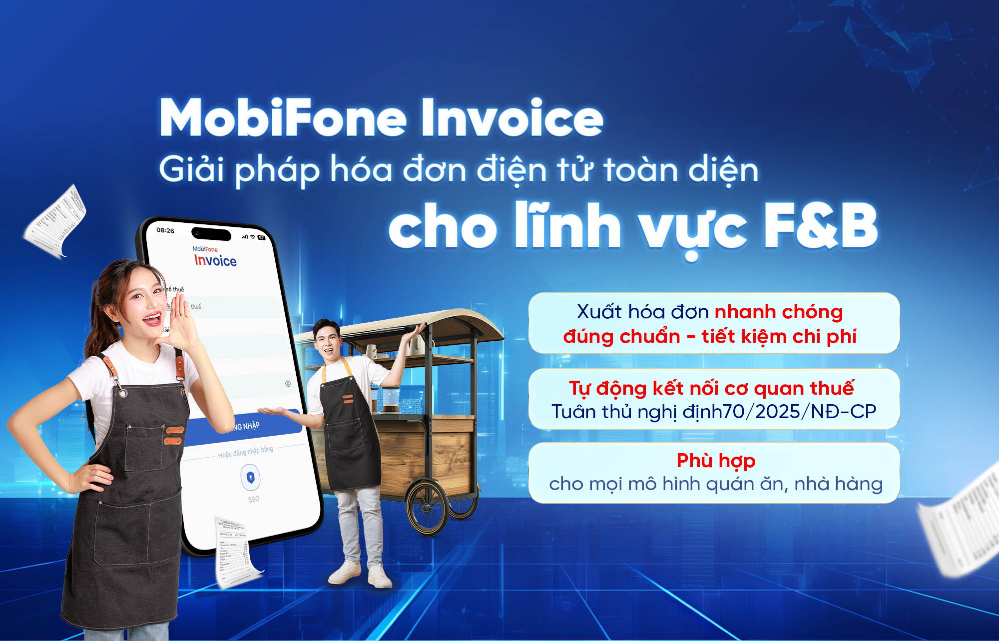 Nhằm tháo gỡ những vướng mắc trong quá trình áp dụng hóa đơn và chứng từ điện tử trong lĩnh vực F&B, MobiFone Invoice mang đến giải pháp phần mềm quản lý và phát hành hóa đơn điện tử toàn diện, giúp các đơn vị kinh doanh tối ưu quy trình vận hành, tiết kiệm thời gian, đồng thời đảm bảo tuân thủ đầy đủ quy định pháp luật hiện hành.