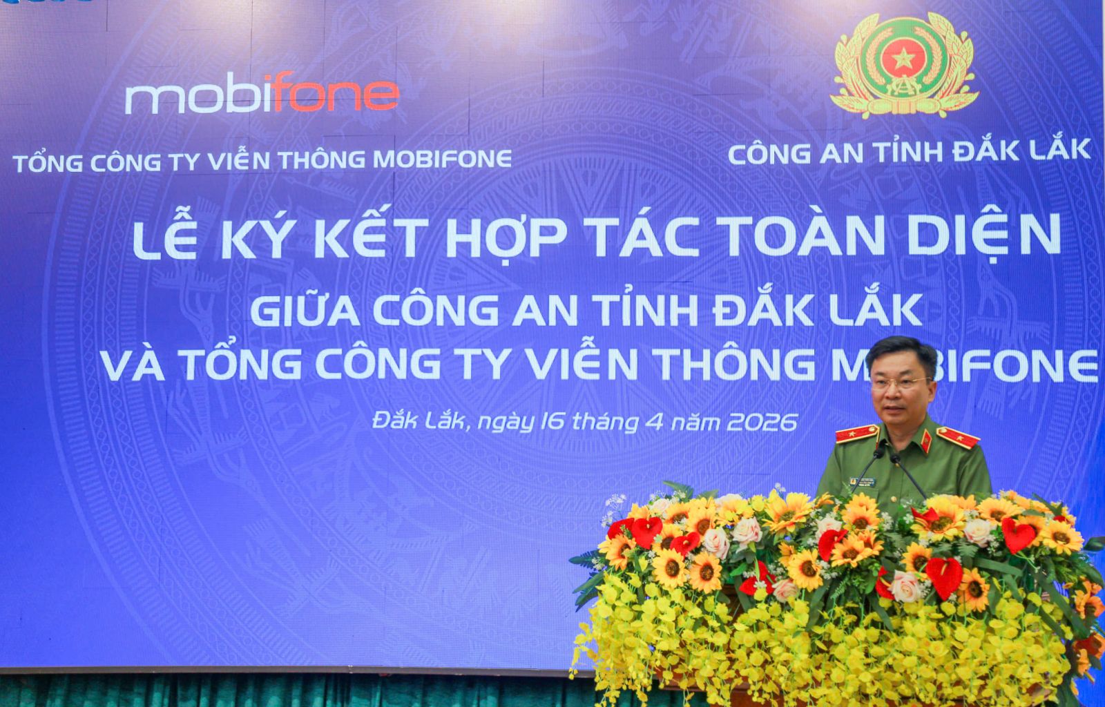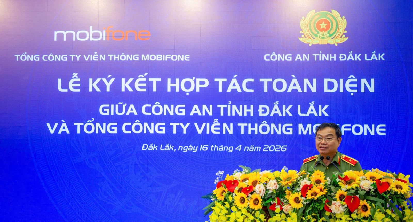 Sáng 16/4/2026, tại trụ sở Công an tỉnh Đắk Lắk, Tổng công ty Viễn thông MobiFone và Công an tỉnh Đắk Lắk đã tổ chức Lễ ký kết Biên bản ghi nhớ hợp tác trong lĩnh vực chuyển đổi số và ứng dụng công nghệ thông tin phục vụ công tác nghiệp vụ, quản lý điều hành và bảo đảm an ninh, trật tự trên địa bàn. Sự kiện thể hiện quyết tâm cụ thể hóa các chủ trương lớn về phát triển khoa học công nghệ, đổi mới sáng tạo và chuyển đổi số trong lực lượng Công an nhân dân.