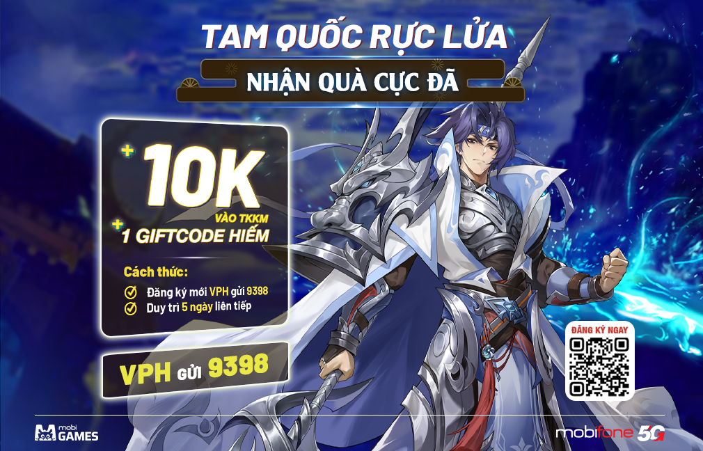 Cuối năm là thời điểm cộng đồng game thủ Tam Quốc sôi động hơn bao giờ hết. Những trận chiến chiến thuật căng não, những màn chiêu mộ danh tướng và hành trình tranh bá thiên hạ đòi hỏi một trải nghiệm liền mạch, ổn định và đủ “tài nguyên” để bứt phá. Bắt trọn xu hướng đó, MobiGames mang đến gói VPH đi kèm chương trình khuyến mãi hấp dẫn: nhận ngay 10.000đ vào tài khoản khuyến mại và Giftcode độc quyền dành cho các tựa game Tam Quốc được yêu thích trên MobiGames.