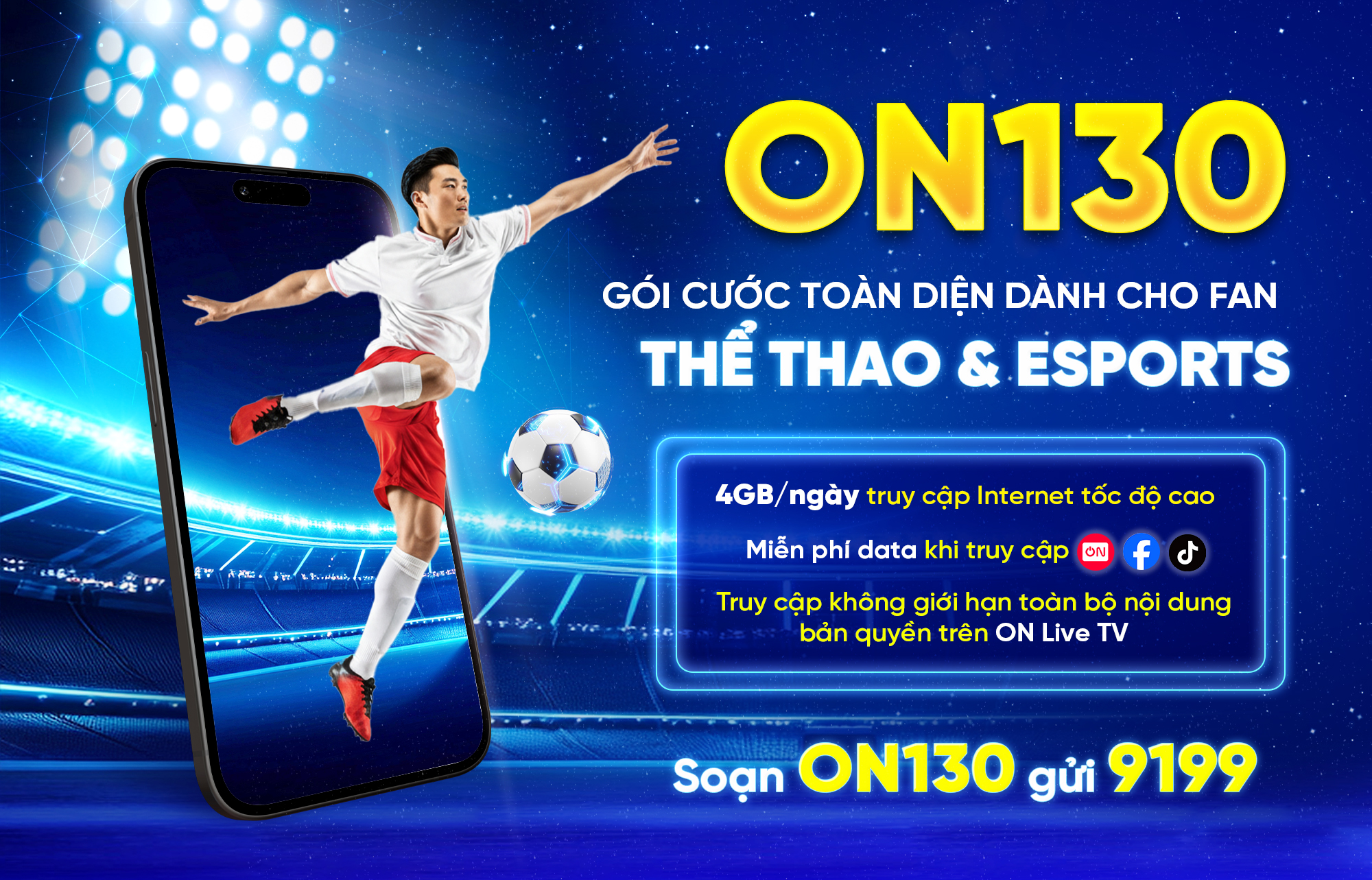 Hãy soạn tin DK ON130 gửi 9199 để bắt đầu hành trình của riêng bạn – nơi tốc độ, kết nối và đam mê gặp nhau. ON130 – gói cước toàn diện cho fan thể thao và eSports, dành cho những ai luôn muốn “cháy” hết mình cùng từng giây phút kịch tính.